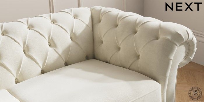 7.0.3 Buy Gosford II Deep Sit 3 Seater Small Sofa Luxe Chenille Oyster Modern Turned Metal Cap - Mid from the Next UK online shop Click here to use our accessible website
