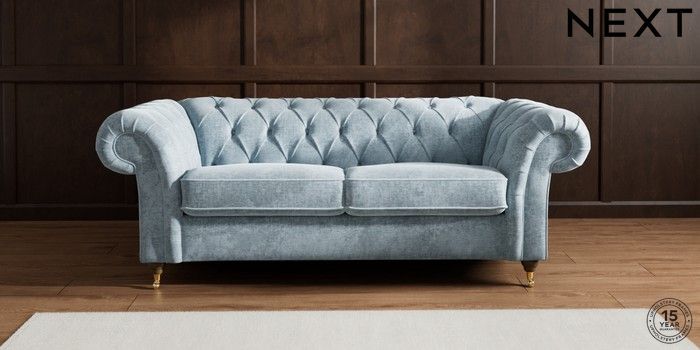 7.2.6 Buy Gosford II Deep Sit 3 Seater Small Sofa Plush Chenille Light Blue Castor - Mid from the Next UK online shop Click here to use our accessible website