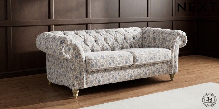 7.3.1 Buy Gosford II Deep Sit 3 Seater Small Sofa Relaxed Linen Look Print Woodblock Floral Blue Low Turned - Light from the Next UK online shop Click here to use our accessible website