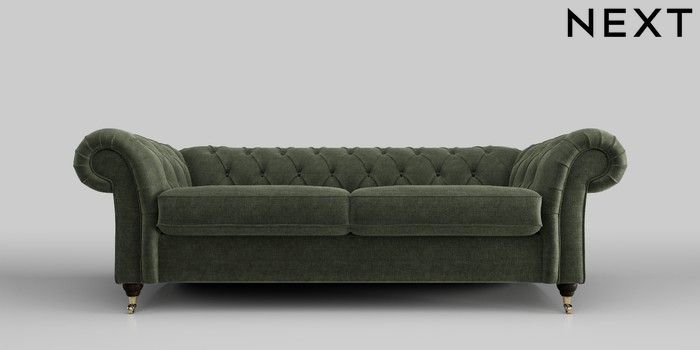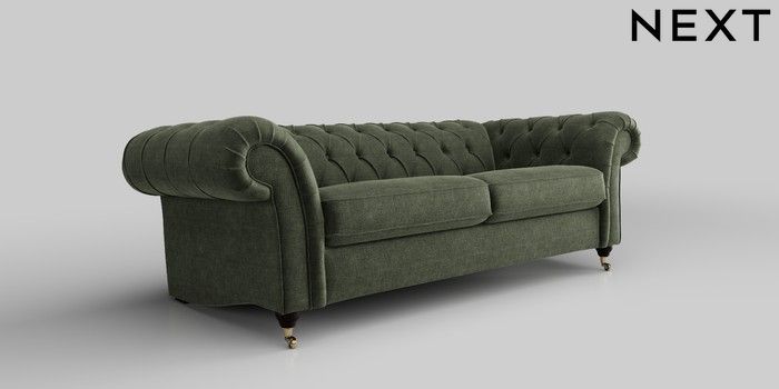 6.12.1 Buy Gosford II Deep Sit 3 Seater Sofa Luxe Chenille Mid Green Castor - Dark from the Next UK online shop Click here to use our accessible website