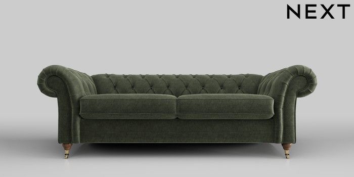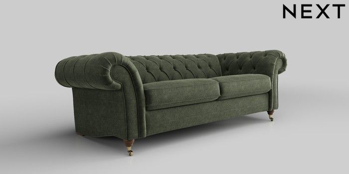 6.12.1 Buy Gosford II Deep Sit 3 Seater Sofa Luxe Chenille Mid Green Castor - Mid from the Next UK online shop Click here to use our accessible website