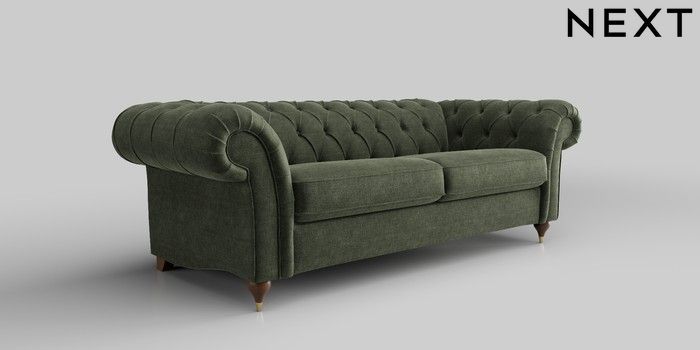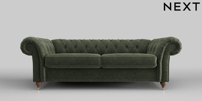 6.12.1 Buy Gosford II Deep Sit 3 Seater Sofa Luxe Chenille Mid Green Modern Turned Metal Cap - Mid from the Next UK online shop Click here to use our accessible website