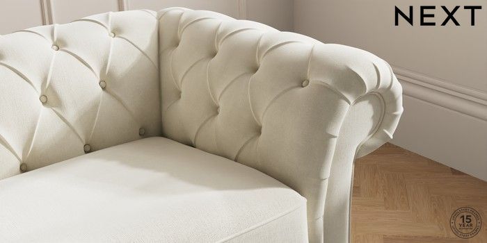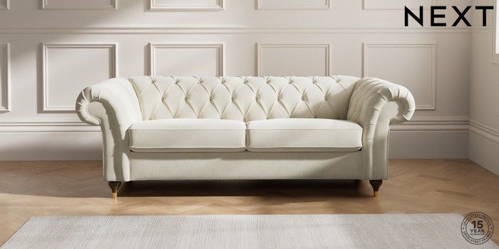 7.0.3 Buy Gosford II Deep Sit 3 Seater Sofa Luxe Chenille Oyster Modern Turned Metal Cap - Mid from the Next UK online shop Click here to use our accessible website