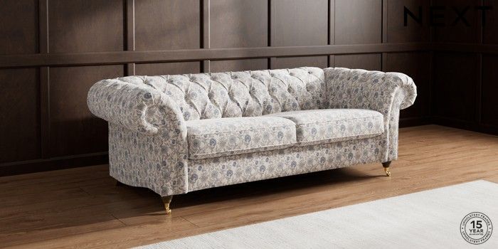 7.3.1 Buy Gosford II Deep Sit 3 Seater Sofa Relaxed Linen Look Print Woodblock Floral Blue Castor - Mid from the Next UK online shop Click here to use our accessible website