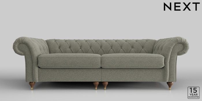 6.12.1 Buy Gosford II Deep Sit 4 Seater Sofa Chunky Marl Light Olive Green Modern Turned Metal Cap - Mid from the Next UK online shop Click here to use our accessible website