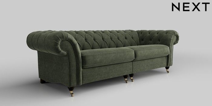 6.12.1 Buy Gosford II Deep Sit 4 Seater Sofa Luxe Chenille Mid Green Castor - Dark from the Next UK online shop Click here to use our accessible website