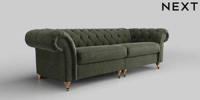 6.12.1 Buy Gosford II Deep Sit 4 Seater Sofa Luxe Chenille Mid Green Castor - Light from the Next UK online shop Click here to use our accessible website