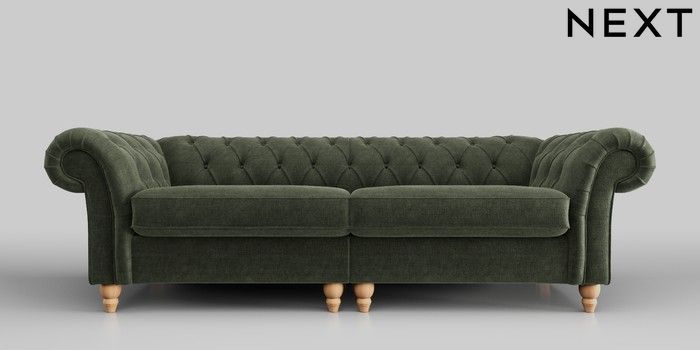 6.12.1 Buy Gosford II Deep Sit 4 Seater Sofa Luxe Chenille Mid Green Low Turned - Light from the Next UK online shop Click here to use our accessible website