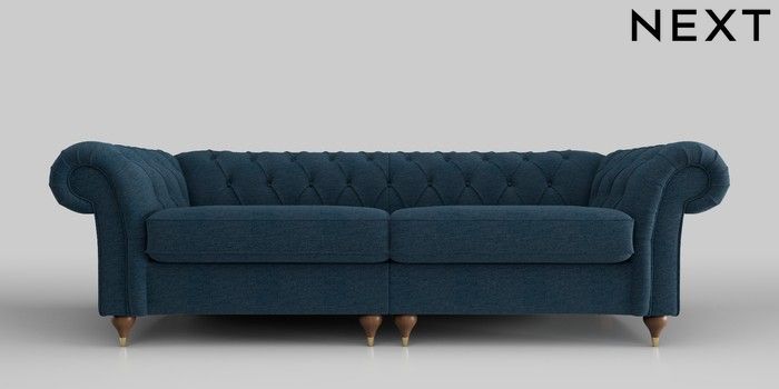 6.12.1 Buy Gosford II Deep Sit 4 Seater Sofa Ripple Chenille Dark Blue Modern Turned Metal Cap - Mid from the Next UK online shop Click here to use our accessible website