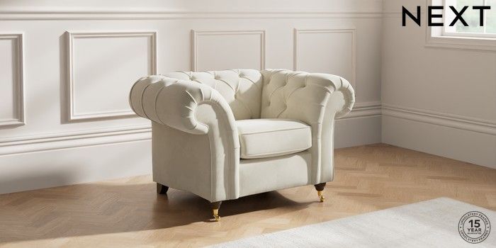 7.0.3 Buy Gosford II Deep Sit Armchair Luxe Chenille Oyster Castor - Mid from the Next UK online shop Click here to use our accessible website