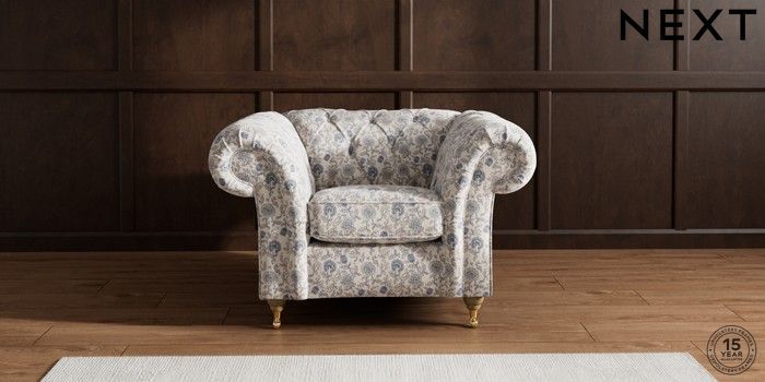 7.3.1 Buy Gosford II Deep Sit Armchair Relaxed Linen Look Print Woodblock Floral Blue Castor - Light from the Next UK online shop Click here to use our accessible website