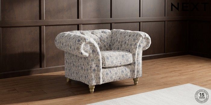 7.3.1 Buy Gosford II Deep Sit Armchair Relaxed Linen Look Print Woodblock Floral Blue Low Turned - Light from the Next UK online shop Click here to use our accessible website