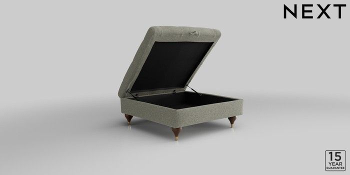 6.12.1 Buy Gosford II Deep Sit Extra Large Storage Footstool Chunky Marl Light Olive Green Modern Turned Metal Cap - Mid from the Next UK online shop Click here to use our accessible website