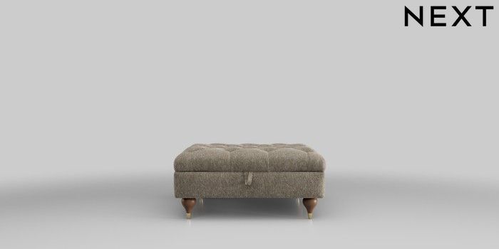 6.12.1 Buy Gosford II Deep Sit Extra Large Storage Footstool Cotswold Chenille Mid Mink Brown Modern Turned Metal Cap - Mid from the Next UK online shop Click here to use our accessible website