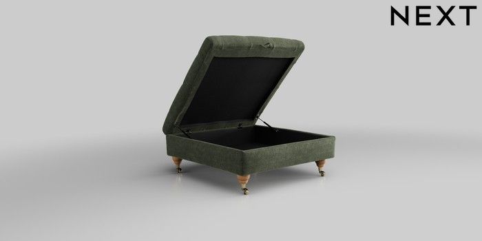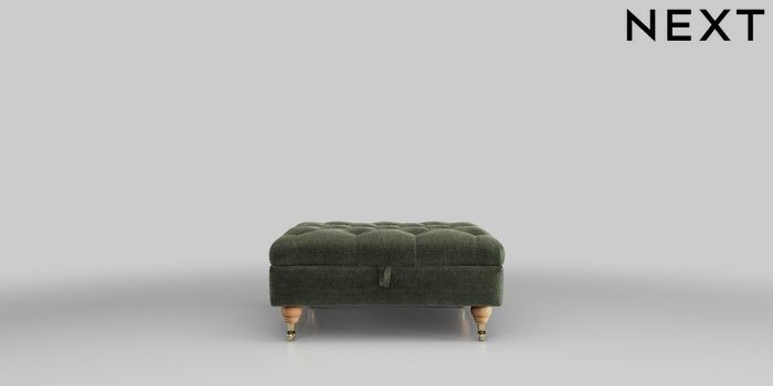 6.12.1 Buy Gosford II Deep Sit Extra Large Storage Footstool Luxe Chenille Mid Green Castor - Light from the Next UK online shop Click here to use our accessible website