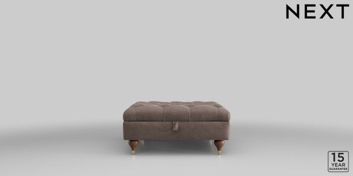 6.12.1 Buy Gosford II Deep Sit Extra Large Storage Footstool Luxe Chenille Mink Brown Modern Turned Metal Cap - Mid from the Next UK online shop Click here to use our accessible website