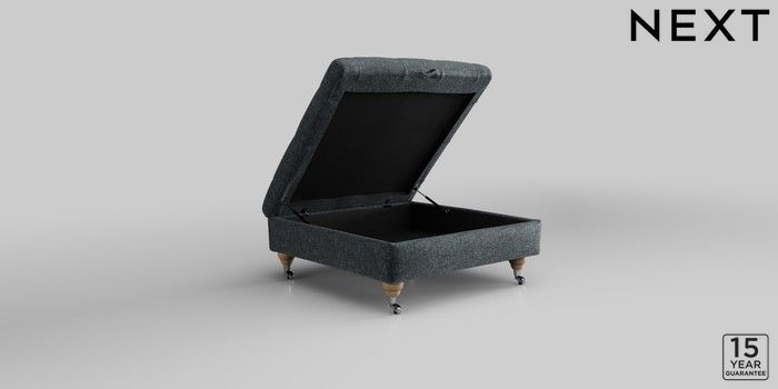 6.12.1 Buy Gosford II Deep Sit Extra Large Storage Footstool Plush Chenille Slate Blue Low Turned - Light from the Next UK online shop Click here to use our accessible website