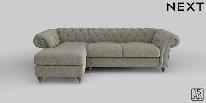 6.12.1 Buy Gosford II Deep Sit Medium Sofa Chaise - Left Hand Chunky Marl Light Olive Green Modern Turned Metal Cap - Mid from the Next UK online shop Click here to use our accessible website