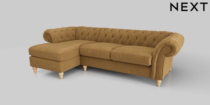 6.12.1 Buy Gosford II Deep Sit Medium Sofa Chaise - Left Hand Luxe Chenille Honey Yellow Low Turned - Light from the Next UK online shop Click here to use our accessible website