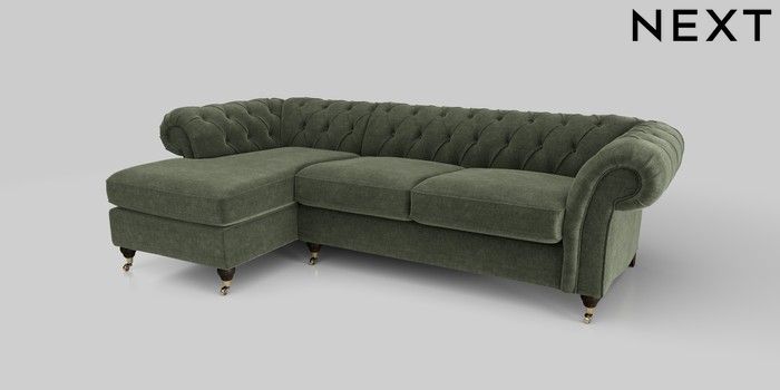 6.12.1 Buy Gosford II Deep Sit Medium Sofa Chaise - Left Hand Luxe Chenille Mid Green Castor - Dark from the Next UK online shop Click here to use our accessible website