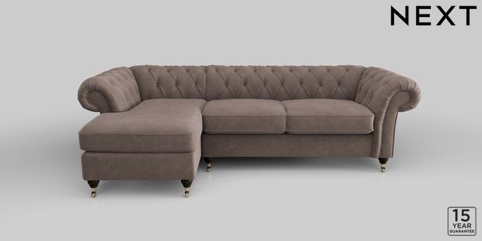 6.12.1 Buy Gosford II Deep Sit Medium Sofa Chaise - Left Hand Luxe Chenille Mink Brown Castor - Dark from the Next UK online shop Click here to use our accessible website
