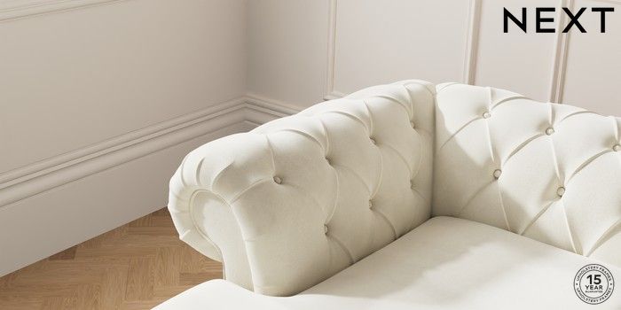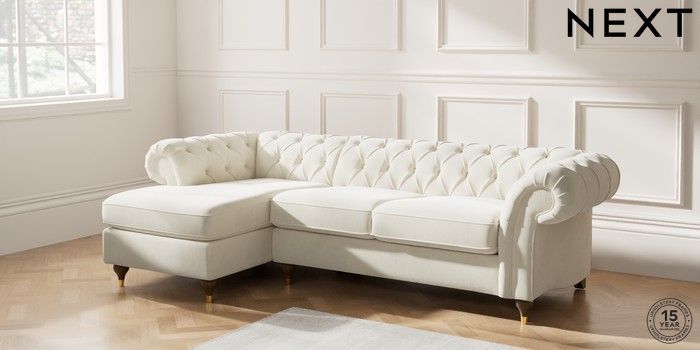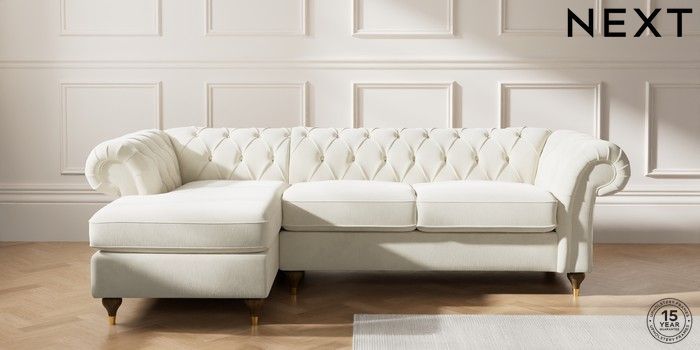 7.0.3 Buy Gosford II Deep Sit Medium Sofa Chaise - Left Hand Luxe Chenille Oyster Modern Turned Metal Cap - Mid from the Next UK online shop Click here to use our accessible website