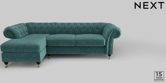 6.12.1 Buy Gosford II Deep Sit Medium Sofa Chaise - Left Hand Plush Chenille Dark Teal Green Castor - Dark from the Next UK online shop Click here to use our accessible website