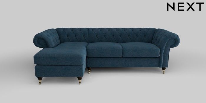 6.12.1 Buy Gosford II Deep Sit Medium Sofa Chaise - Left Hand Ripple Chenille Dark Blue Castor - Dark from the Next UK online shop Click here to use our accessible website