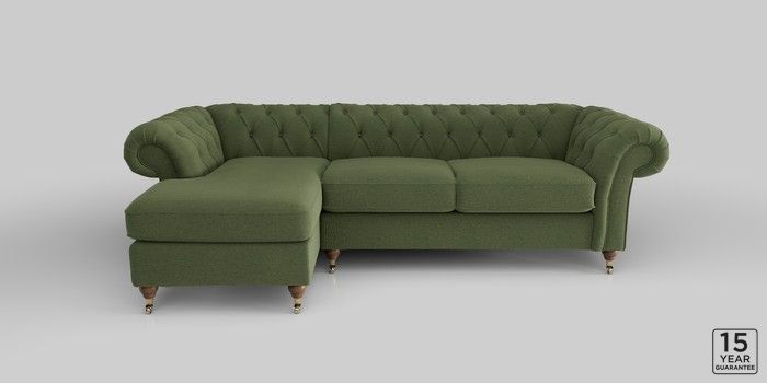 6.12.1 Buy Gosford II Deep Sit Medium Sofa Chaise - Left Hand Ripple Chenille Mid Moss Green Castor - Mid from the Next UK online shop Click here to use our accessible website