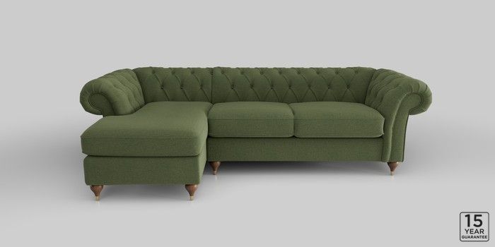 6.12.1 Buy Gosford II Deep Sit Medium Sofa Chaise - Left Hand Ripple Chenille Mid Moss Green Modern Turned Metal Cap - Mid from the Next UK online shop Click here to use our accessible website