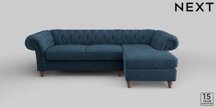6.12.1 Buy Gosford II Deep Sit Medium Sofa Chaise - Right Hand Cotswold Chenille Dark Blue Low Turned - Mid from the Next UK online shop Click here to use our accessible website