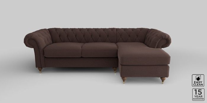 6.12.1 Buy Gosford II Deep Sit Medium Sofa Chaise - Right Hand Fine Chenille Easy Clean Chocolate Brown Modern Turned Metal Cap - Mid from the Next UK online shop Click here to use our accessible website
