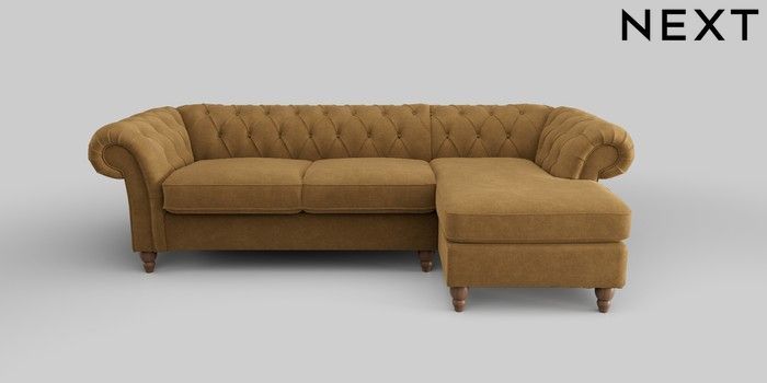 6.12.1 Buy Gosford II Deep Sit Medium Sofa Chaise - Right Hand Luxe Chenille Honey Yellow Low Turned - Mid from the Next UK online shop Click here to use our accessible website