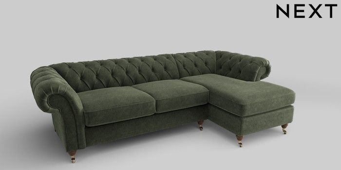 6.12.1 Buy Gosford II Deep Sit Medium Sofa Chaise - Right Hand Luxe Chenille Mid Green Castor - Mid from the Next UK online shop Click here to use our accessible website