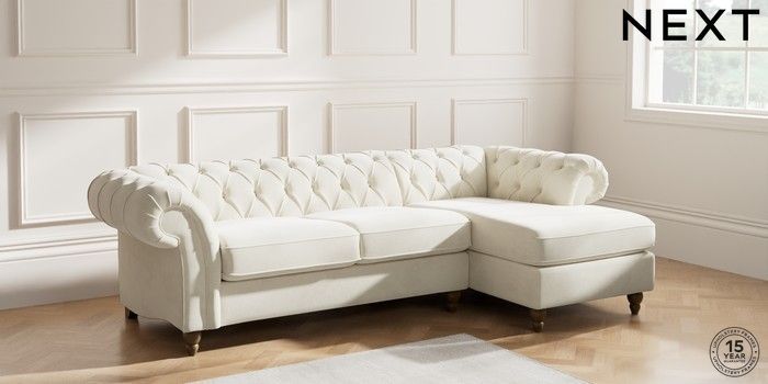 7.0.3 Buy Gosford II Deep Sit Medium Sofa Chaise - Right Hand Luxe Chenille Oyster Low Turned - Mid from the Next UK online shop Click here to use our accessible website