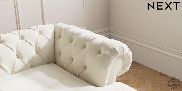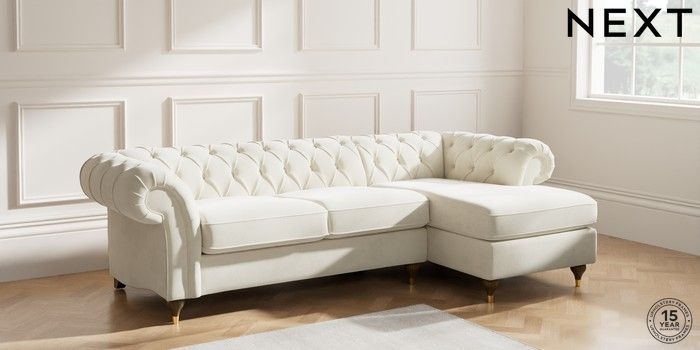 7.0.3 Buy Gosford II Deep Sit Medium Sofa Chaise - Right Hand Luxe Chenille Oyster Modern Turned Metal Cap - Mid from the Next UK online shop Click here to use our accessible website