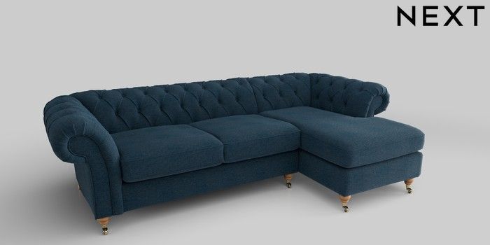 6.12.1 Buy Gosford II Deep Sit Medium Sofa Chaise - Right Hand Ripple Chenille Dark Blue Castor - Light from the Next UK online shop Click here to use our accessible website