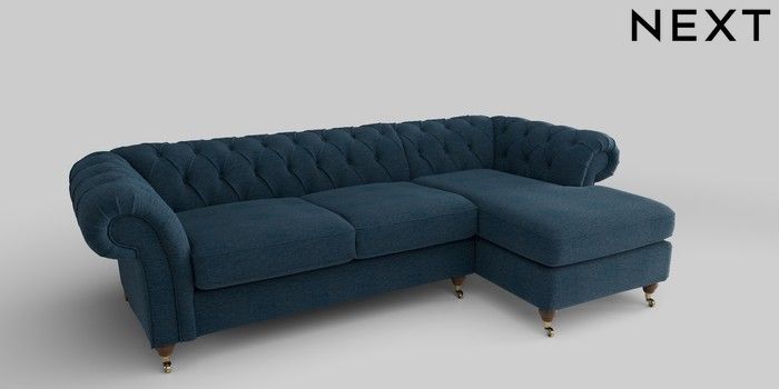 6.12.1 Buy Gosford II Deep Sit Medium Sofa Chaise - Right Hand Ripple Chenille Dark Blue Castor - Mid from the Next UK online shop Click here to use our accessible website
