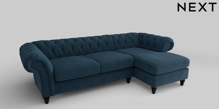 6.12.1 Buy Gosford II Deep Sit Medium Sofa Chaise - Right Hand Ripple Chenille Dark Blue Low Turned - Dark from the Next UK online shop Click here to use our accessible website