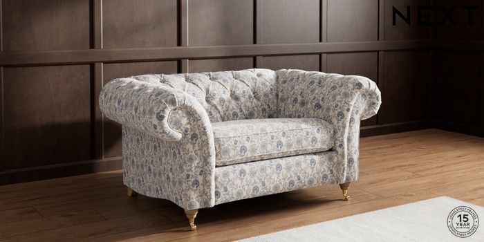 7.3.1 Buy Gosford II Deep Sit Snuggle Relaxed Linen Look Print Woodblock Floral Blue Castor - Light from the Next UK online shop Click here to use our accessible website