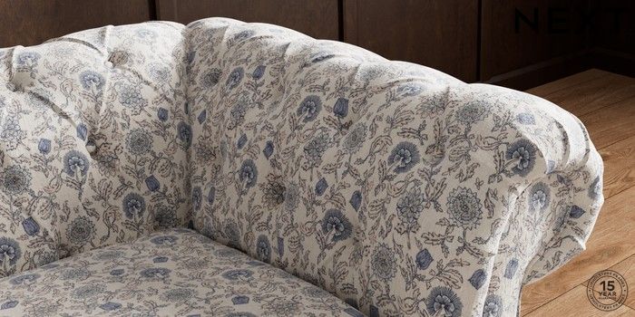 7.3.1 Buy Gosford II Deep Sit Snuggle Relaxed Linen Look Print Woodblock Floral Blue Low Turned - Dark from the Next UK online shop Click here to use our accessible website