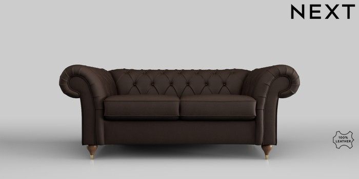 6.12.1 Buy Gosford Leather Deep Sit 2 Seater Sofa Turin Leather Dark Brown Modern Turned Metal Cap - Mid from the Next UK online shop Click here to use our accessible website