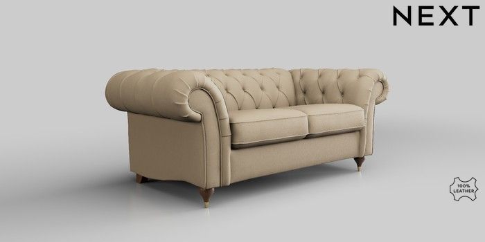 6.12.1 Buy Gosford Leather Deep Sit 2 Seater Sofa Turin Leather Light Natural Modern Turned Metal Cap - Mid from the Next UK online shop Click here to use our accessible website