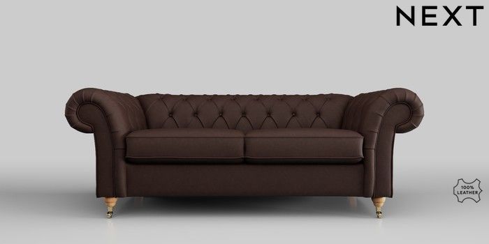 6.12.1 Buy Gosford Leather Deep Sit 3 Seater Small Sofa Rustic Leather Dark Brown Castor - Light from the Next UK online shop Click here to use our accessible website