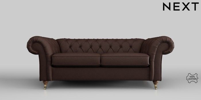 6.12.1 Buy Gosford Leather Deep Sit 3 Seater Small Sofa Rustic Leather Dark Brown Castor - Mid from the Next UK online shop Click here to use our accessible website