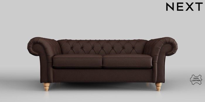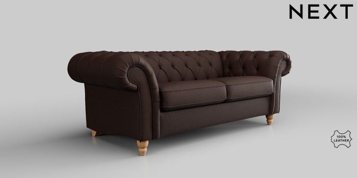 6.12.1 Buy Gosford Leather Deep Sit 3 Seater Small Sofa Rustic Leather Dark Brown Low Turned - Light from the Next UK online shop Click here to use our accessible website