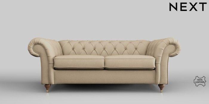 6.12.1 Buy Gosford Leather Deep Sit 3 Seater Small Sofa Turin Leather Light Natural Modern Turned Metal Cap - Mid from the Next UK online shop Click here to use our accessible website