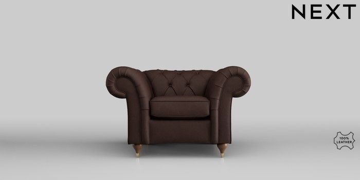 6.12.1 Buy Gosford Leather Deep Sit Armchair Rustic Leather Dark Brown Modern Turned Metal Cap - Mid from the Next UK online shop Click here to use our accessible website