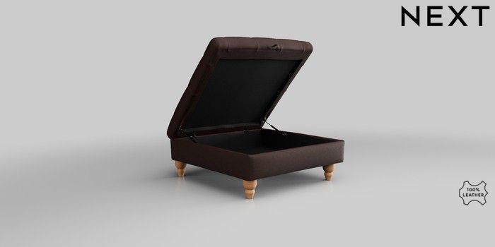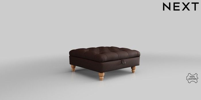6.12.1 Buy Gosford Leather Deep Sit Extra Large Storage Footstool Rustic Leather Dark Brown Low Turned - Light from the Next UK online shop Click here to use our accessible website