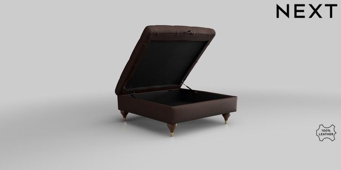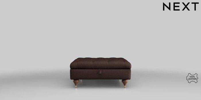 6.12.1 Buy Gosford Leather Deep Sit Extra Large Storage Footstool Rustic Leather Dark Brown Modern Turned Metal Cap - Mid from the Next UK online shop Click here to use our accessible website